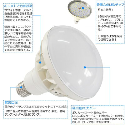 4、最新の超高輝度LEDチップを使用、安心のメーカー2年保証 取り付き方法 E39口金で従来のほとんどの器具に取り付け可能、工事不要ので電球交換のみで使用できます。