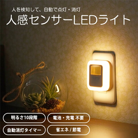 センサーライト 人感センサー フットライト 足元灯 簡単操作 非常灯 自動点灯 自動消灯 節電 省エネ 屋内 コンセント コンセント式 玄関 廊下 通路 階段 寝室トイレ キッチン 台所 シンプル おしゃれ コンセントライト