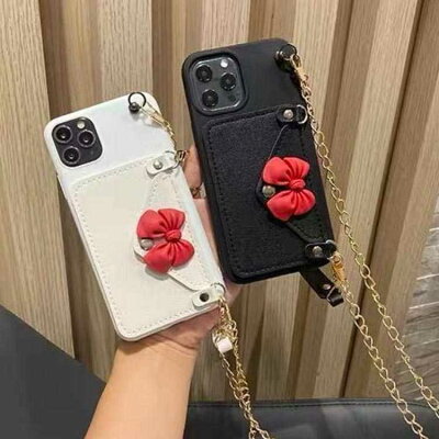 スマホケース iPhone 13ケース リボン 12ケース 斜め掛け チェーン ストラップ付き ショルダー ケース iPhone 12Pro Max 12mini 12Pro 12 11Pro Max 11Pro 11 ケース ネックストラップ ウォレットタイプ カード収納 カード入れ 送料無料
