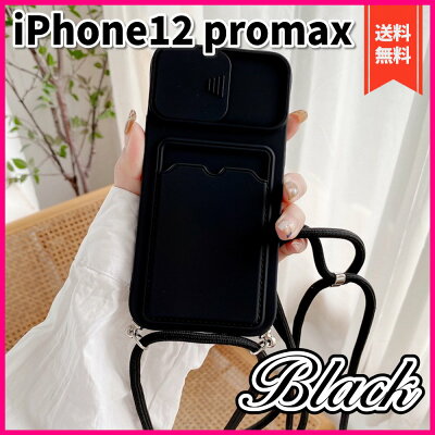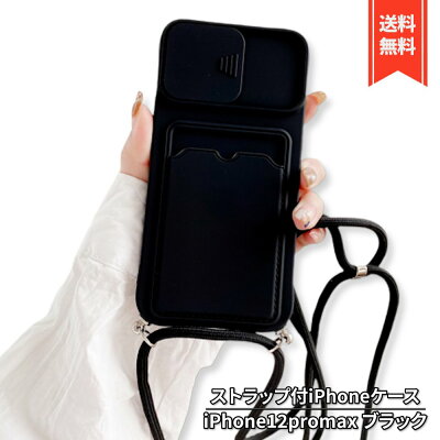 送料無料!! iPhone ケース iphone12promax ブラック ショルダー ストラップ付 (iphone12promax, ブラック)