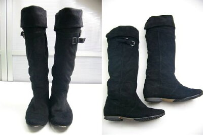 【ESPERANZA/エスペランサ】M/23-23.5cm程度□ロングブーツ□スエード調□ブラック□2連ベルト付□シンプル□【中古】【あす楽可】