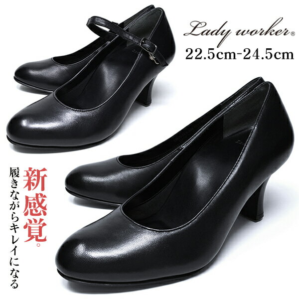 パンプス レディース 痛くない 歩きやすい LADY WORKER レディーワーカー 本革 アシックス商事 立ち仕事 黒 ブラック 3E相当 2E 相当 靴 プレーン ストラップ ビジネスシューズ 就活 スーツ