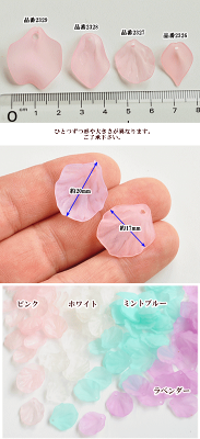 花びら パーツ 約20mm×17mm 40枚セット 全4色 《 花弁 花 フラワー マット 艶消し アクセサリー イヤリング ピアス ネックレス ブレスレット デコ ハンドメイド 手作り 材料 アクリル 》
