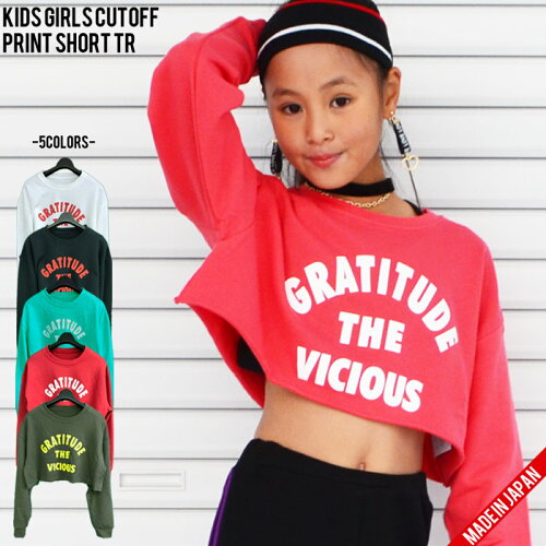 【日本製】GRATITUDE/ショート丈トレーナー/スウェット/トレーナー/長袖/切りっぱなし/へそ出し/ジュニア/ガールズ/女の子 大人 ダンス/DANCE ヒップホップ/HIPHOP ダンスウェア/衣装 チーム/サークル おそろい シンプル ロゴ プリント カラフル【メール便12】