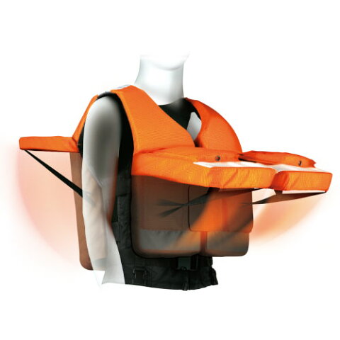 世界初となるフローティングボードを搭載し直立浮遊を可能にした画期的なライフジャケット。