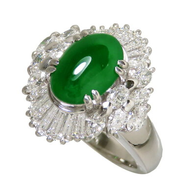 12号 翡翠 2.12ct ダイヤモンド 計1.58ct リング・指輪 Pt900プラチナ 12.9g レディース【中古】【真子質店】【NN】【TMixx】