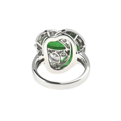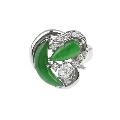 “成功と繁栄”をもたらす石とされ、古くから珍重されてきたヒスイを大胆にデザインしセッティングした、プラチナ製リング。