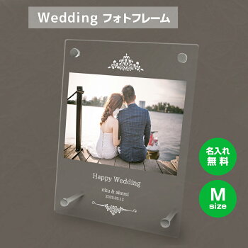 【名入れ無料】送料無料 フォトフレーム M ブライダル ウェディング 結婚祝い かわいい 縦置き 横置き フレーム 写真立て 写真たて 写真入れ 名入れ 名前入り 文字入れ おしゃれ メモリアル フォト フォトスタンド アクリル ギフト プレゼント 結婚式 結婚 誕生日 記念日