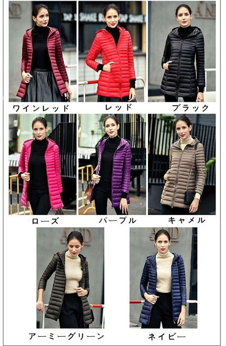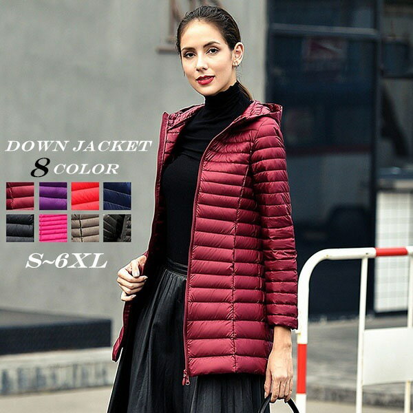薄手 ダウン コート 90%ダウン レディース 軽量 暖かい アウター 秋冬 柔らかい 防寒 立体ステッチ軽い おしゃれ きれいめ フード付き ロング丈 ダウンジャケット 大きいサイズ 冬物 カジュアル【S/M/L/2L/3L/4L/5L/6L/7L】 赤 黒 ピンク 紫 茶色 カーキ 紺色 dw166s1