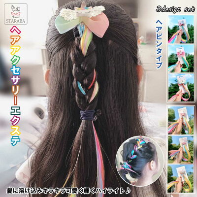 ヘアアクセサリー エクステ 髪飾り カラフル 編み込み用 グラデーションカラー かわいい おしゃれ ウィッグ ストレート ロング 40cm キッズ ダンス ヒップホップ 3個入り 送料無料