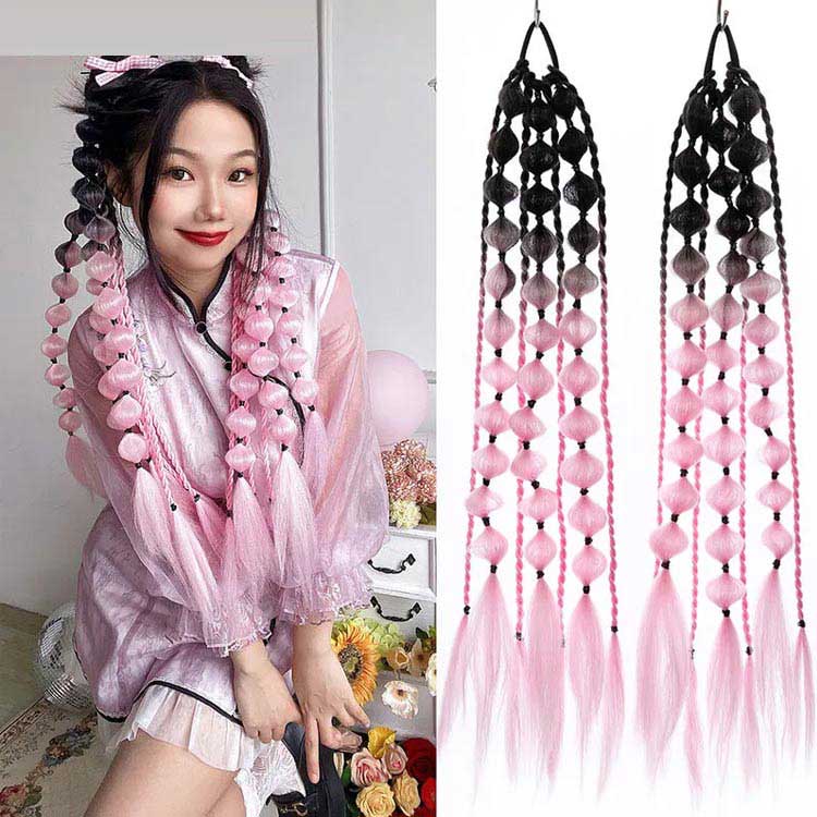 ヘアゴムなのでポニーテールやツインテールにそのまま付ける事もできます!2個の組み合わせで、よりキレイで魅力溢れるブレイズヘアになります。
