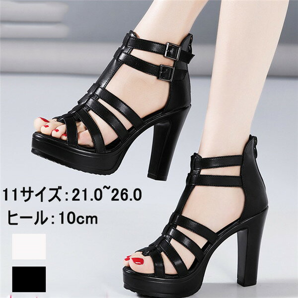 12サイズ サンダル レディース 厚底 太ヒール ベルト グラディエーター 大きいサイズ コンフォートサンダル 厚底サンダル ハイヒール ストーム ヒール10センチ 着心地よい 小さいサイズ 靴 女性 大人 ブラック ホワイト
