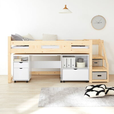 [ポイント10倍! 9/4 20:00-9/5 23:59] ロフトベッド システムベッド すのこベッド システムデスク デスク付き ベッド デスク 階段 収納 チェスト付き 学習机 子供 子供部屋 キッズ 木製 テレワーク 在宅 リモートワーク 新生活